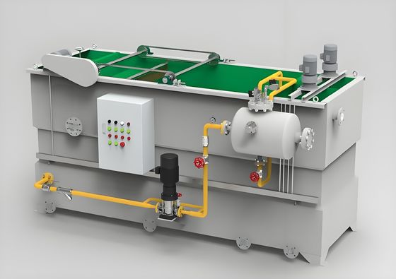 Phong trào không khí chủ yếu đóng một vai trò trong việc tách chất rắn và chất lỏng (trong khi giảm COD, BOD, màu sắc, v.v.).và sau một thời gian phản ứng flocculation hiệu quả, nước thô đi vào khu vực tiếp xúc nổi không khí kết hợp.các bong bóng vi mô trong nước hòa tan dính vào các vảy trong nước thô và đi vào vùng tách cùng nhauDưới sức nổi của bong bóng, các lớp và bong bóng cùng nhau lên bề mặt chất lỏng, tạo thành bụi bùn.Nước sạch trong lớp dưới chảy đến bể nước sạch thông qua ống thuMột phần nước sạch chảy trở lại để sử dụng trong hệ thống khí hòa tan, trong khi phần còn lại được thải ra.