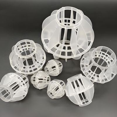 Các chất lấp nước xử lý được làm từ nhựa polypropylene thành hình cầu. Có một vòng củng cố ở giữa quả bóng dọc theo toàn bộ chu vi.Có mười hai cánh hoa hình cầu trên và dưới vòng., được sắp xếp theo mô hình quang dọc theo trục trung tâm. Nó phù hợp với việc loại bỏ carbon dichloride. tháp khí, tháp phản ứng tiếp xúc và các thiết bị khác.